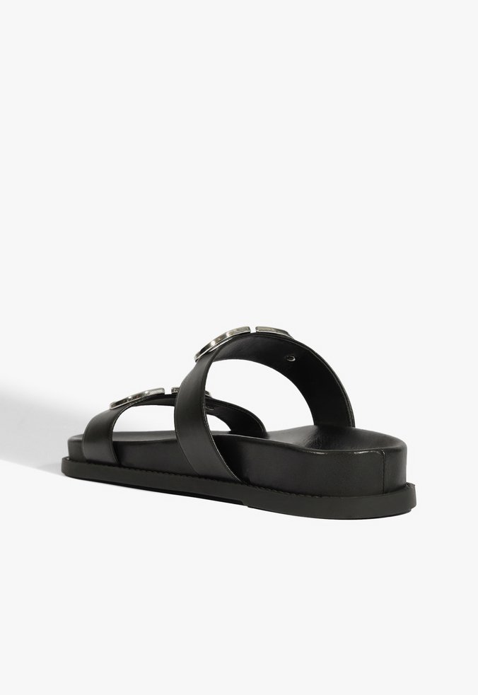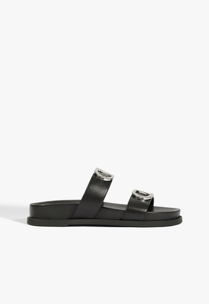 Sandália Papete Couro Preta